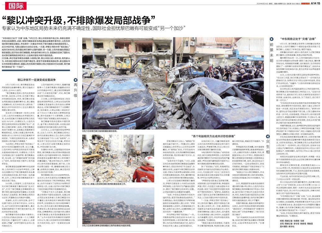 “中东地区已处于‘灾难’边缘。”9月22日,黎以冲突持续升级之际,有联合国官员发出如是警告。