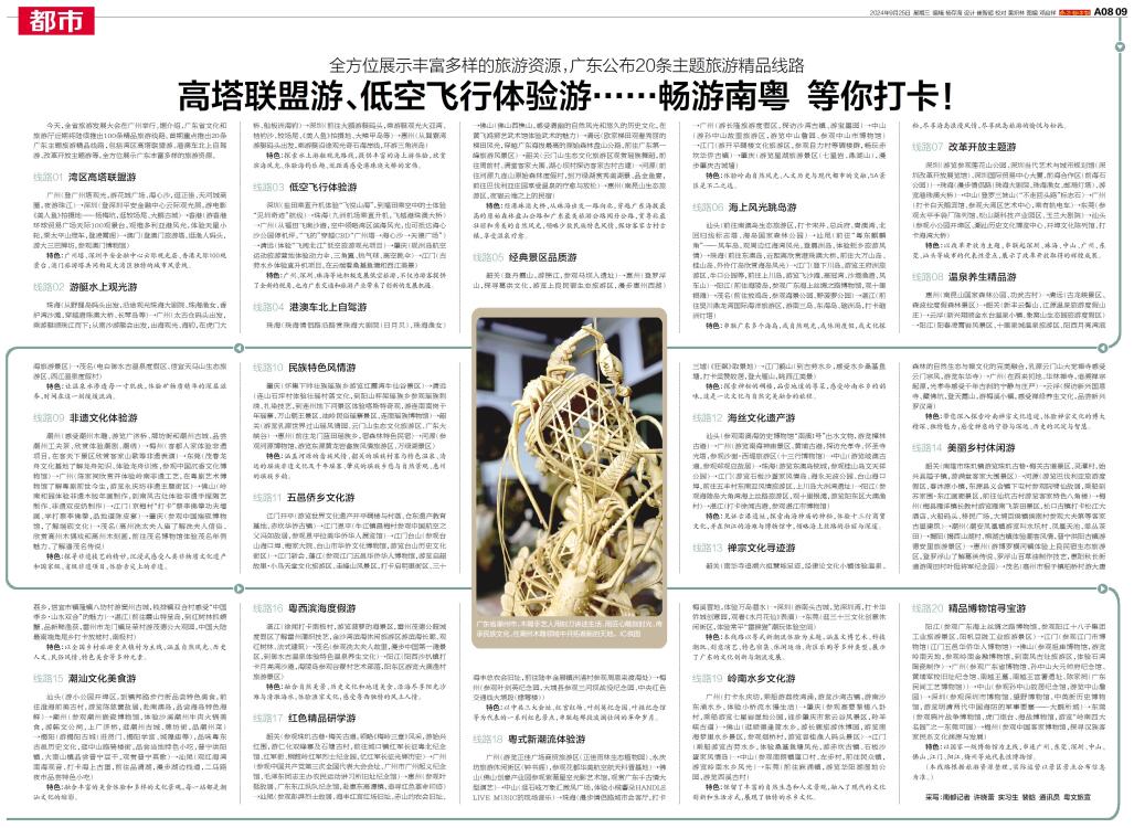 特色:广州、深圳、珠海等地积极发展低空旅游,不仅为游客提供了全新的视角,也为广东交通和旅游产业带来了创新的发展机遇。