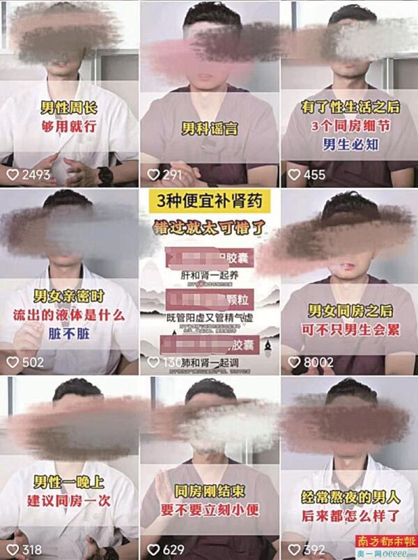雷同的机位、相似的文案,视频里的“医生”先用两性健康话题吸引关注,最后表达真实目的:推广药品。有人将这类医生称为“演员医生”。