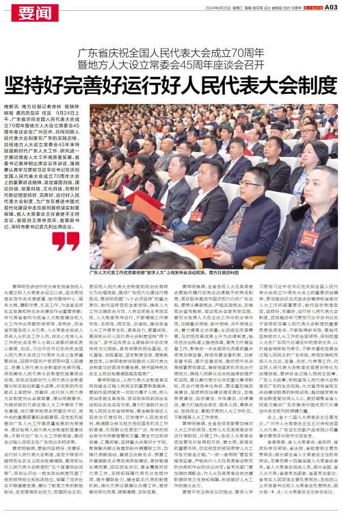 9月24日上午,广东省庆祝全国人民代表大会成立70周年暨地方人大设立常委会45周年座谈会在广州召开。