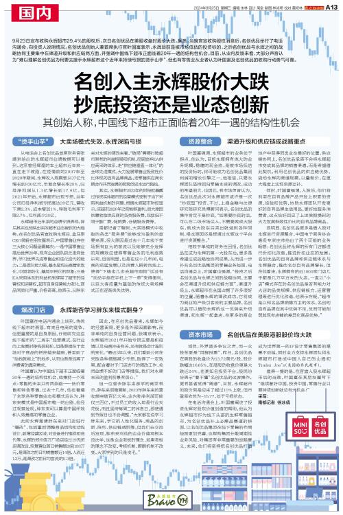 名创入主永辉股价大跌 抄底投资还是业态创新