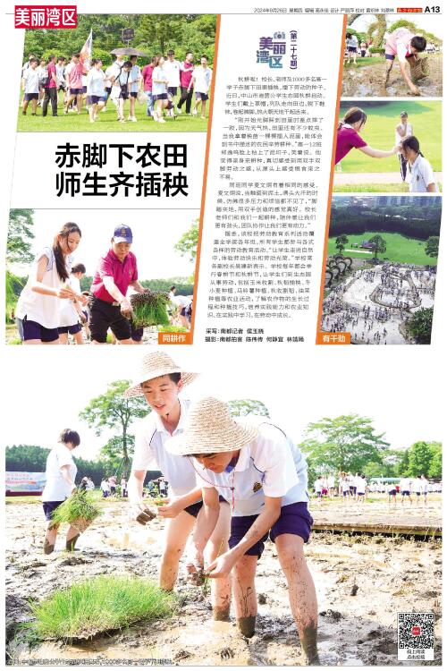 近日,中山市迪茵公学生态园秋耕启动。学生们戴上草帽,列队走向田边,脱下鞋袜,卷起裤脚,热火朝天地干起活来。
