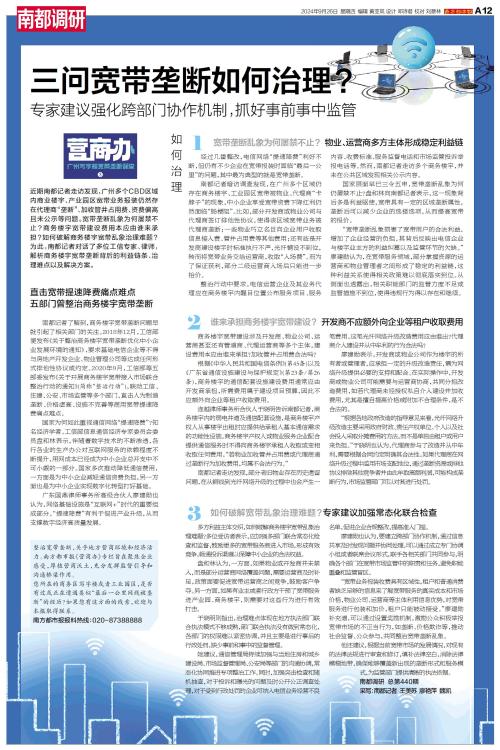 近期南都记者走访发现,广州多个CBD区域内商业楼宇、产业园区宽带业务报装仍然存在代理商“垄断”、加收管井占用费、资费偏高且未公示等问题。