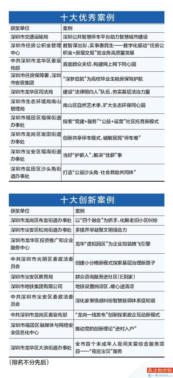 经充分调研、多方评审,最终评选出深入践行党的群众路线,网上用心听民意,网下用力解民忧的十大创新案例和十大优秀案例。获奖名单如下: