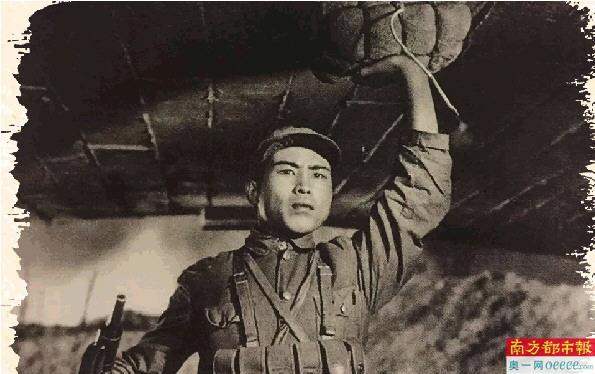 电影《董存瑞》片中最为经典的镜头依然留在几代人的心中——董存瑞单手高举炸药包,拉响导火索,高喊道“为了新中国,前进!”