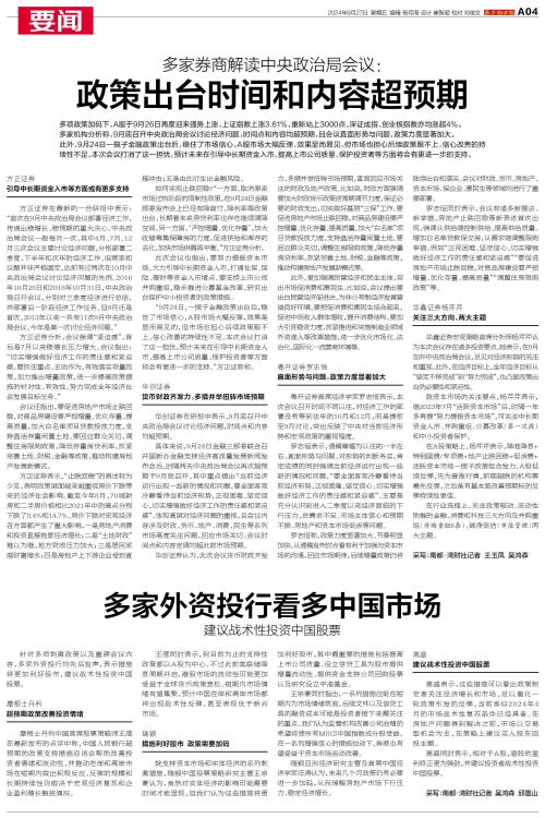 针对多项刺激政策以及重磅会议内容,多家外资投行均先后发声,表示措施将更加利好股市,建议战术性投资中国股票。