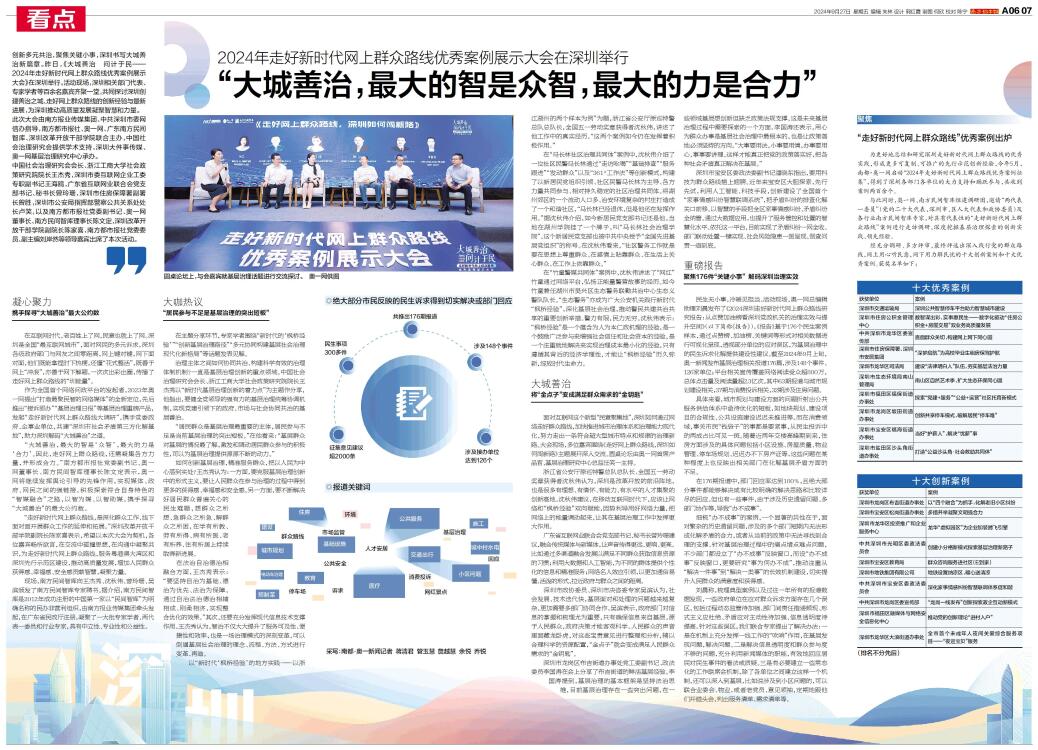 昨日,《大城善治 问计于民——2024年走好新时代网上群众路线优秀案例展示大会》在深圳举行。