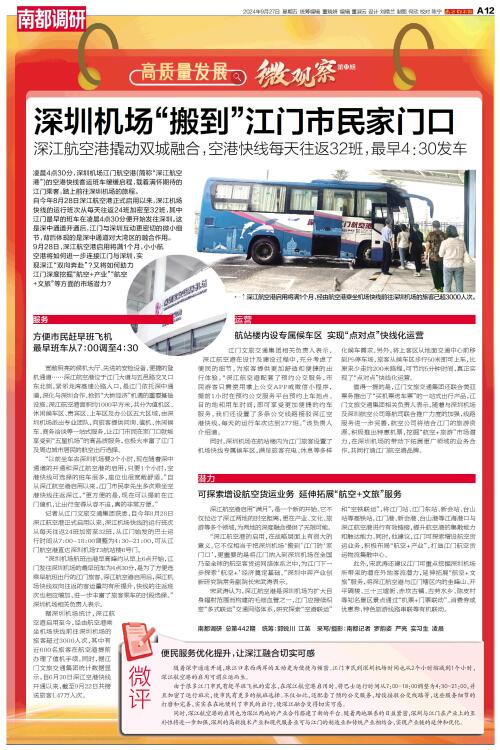 凌晨4点30分,深圳机场江门航空港(简称“深江航空港”)的空港快线客运班车缓缓启程,载着满怀期待的江门乘客,踏上前往深圳机场的旅程。