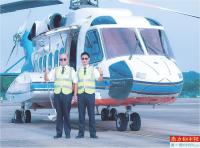 南航广州至香港的直升机跨境航线首飞,执飞人员与S92直升机合影留念。