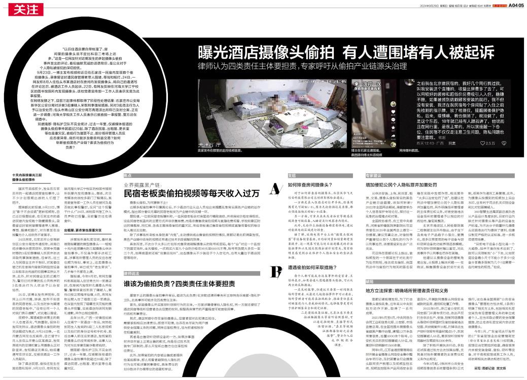 另据南都·隐私护卫队不完全统计,过去一年里,仅被媒体报道的摄像头偷拍事件就超过20起,除了酒店民宿,出租屋、更衣室等也是重灾区。偷拍行为屡禁不止,部分场所管理人员反应态度异常,背后可能涉及哪些利益交易?如何斩断偷拍黑色产业链?谁该为偷拍行为负责?