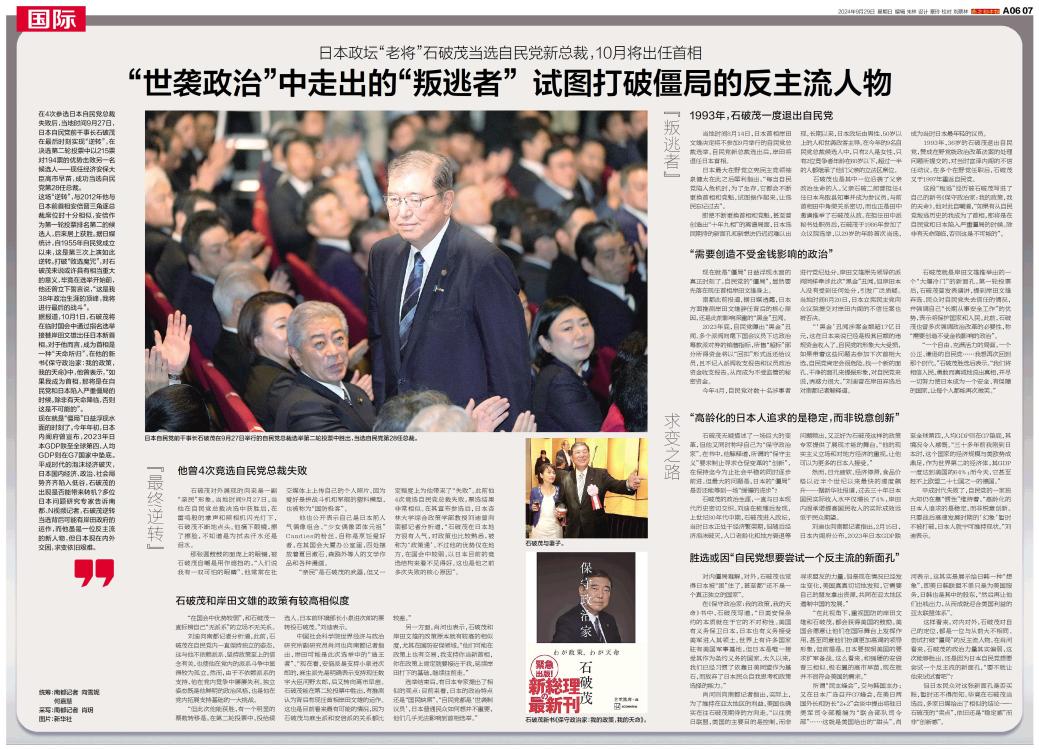 在4次参选日本自民党总裁失败后,当地时间9月27日,日本自民党前干事长石破茂在最后时刻实现“逆转”。