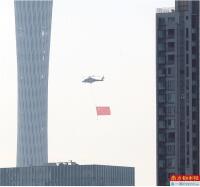 10月1日,广州市公安局指挥中心警航支队出动3架警用直升机悬挂国旗编队巡逻飞行。