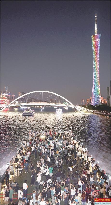 广州海事局统计数据显示,10月2日,广州珠江夜游单晚发送旅客达41925人次,创下有旅客人数统计以来的历史新高。1-3日,珠江游接待旅客12.03万人,同比增加27.49%。其中,珠江夜游9.76万人次,同比增加16.79%。国庆期间,广州珠江日、夜游持续高位运行。广州公交集团客轮公司向南都、N视频记者介绍:国庆黄金周期间,客轮公司珠江日、夜游计划投入19艘船舶运力、开超过700个航班,夜游客流集中主要时段为晚上19:30-22:00,航班编排基本覆盖所有高峰时段。市客轮公司黄金周前三天共运输旅客超过8.6万人次,对比去年同期增幅约12%。广州城港旅游发展公司管理的广州塔财富码头也给出靓丽数据,国庆长假到发稿时止(10月4日晚)共接待珠江日、夜游游客5.1万人次。
