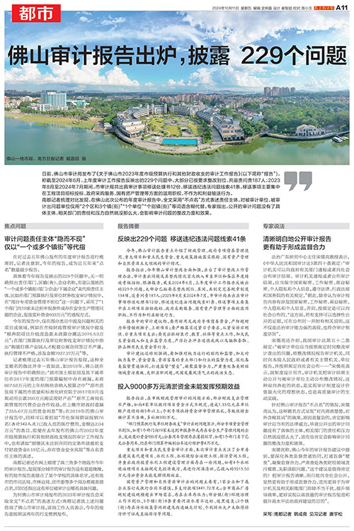 日前,佛山市审计局发布了《关于佛山市2023年度市级预算执行和其他财政收支的审计工作报告》。