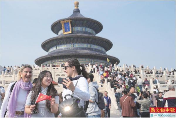 游客在天坛公园祈年殿前游览。北京是国庆假期的热门目的地。 新华社发