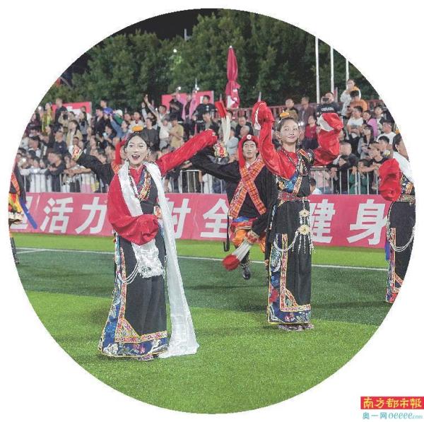 10月4日,在“村超”比赛中场休息时间,丰富多彩的文艺节目表演让球迷和游客好评如潮。榕江县融媒体中心供图
