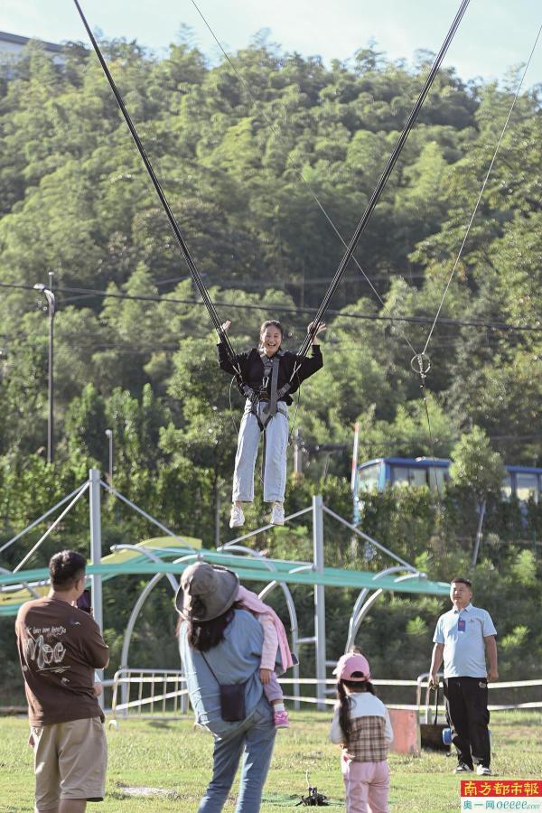 10月2日,游客在浙江省安吉县山川乡“熊猫部落”探险乐园体验游乐项目。 新华社发