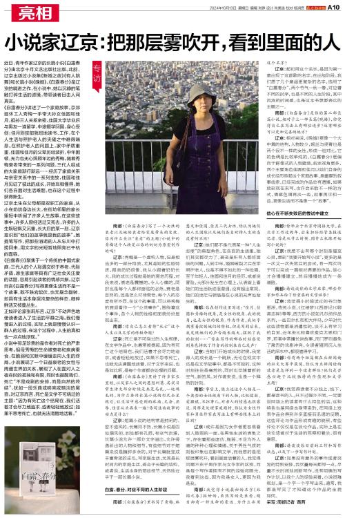近日,青年作家辽京的长篇小说《白露春分》由北京十月文艺出版社出版。