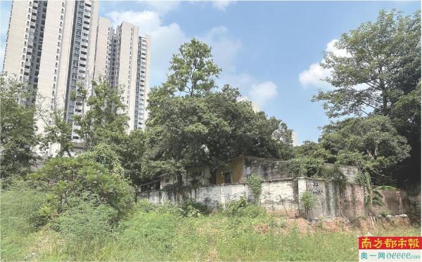 旧改方案中肥猪山庄地块所在地“荔枝公园”(荔枝山)内树木郁郁葱葱,部分区域被围墙圈住。