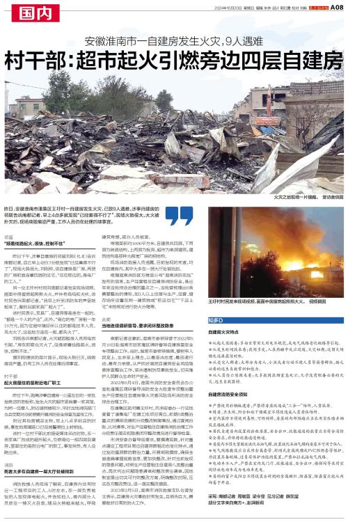 昨日,安徽淮南市潘集区王圩村一自建房发生火灾,已致9人遇难。