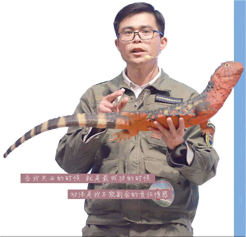 何南:这个称呼是别人取的。对鳄蜥的保护好比对小孩的照顾一样,不管是对任何物种,只有对它倾注爱、情感,把工作变成你的生活,这样才有热情,能长久地坚持下去。