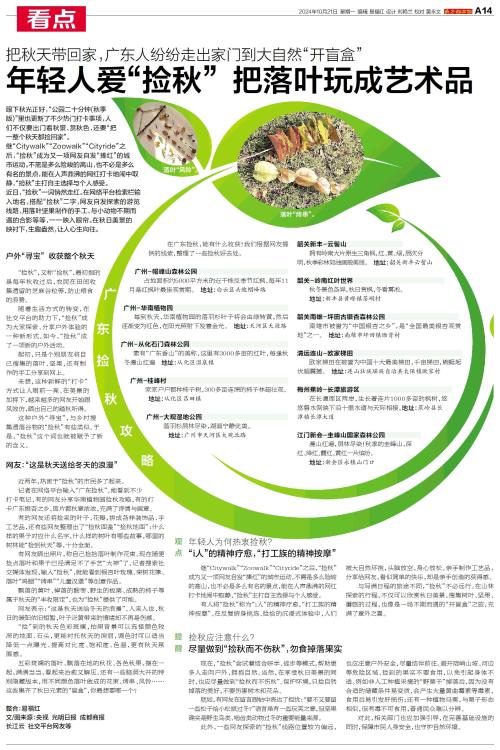 眼下秋光正好,“公园二十分钟(秋季版)”里也更新了不少热门打卡事项,人们不仅要出门看秋景、赏秋色,还要“把一整个秋天都捡回家”。