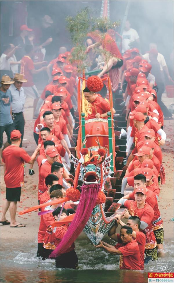 沈绵钺拍摄的揭阳人送龙舟下水,当地称之为“顺水”(俗称落水)。