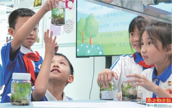 梅园实验学校三年级的学生们做好自己的微型生态瓶后,表示很有成就感。