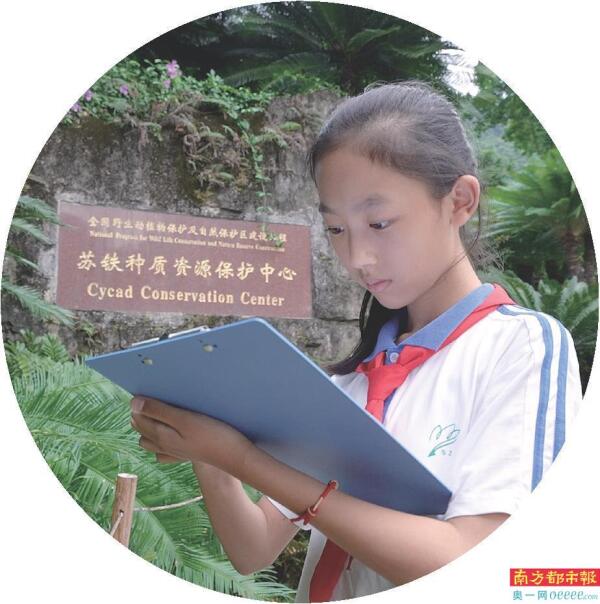 李鑫浩同学一会儿被石头吸引,一会儿被记者的设备吸引,但一看他的学习任务单,知识点也没有落下。在小组同学的互相帮助下,原来李鑫浩早早按照学习任务单完成了观察任务并填写。“我很喜欢这种半天课外实践的学习,可以实地观察到植物,而且这里全部都是绿的,对眼睛很好。”李鑫浩表示之后还想再来苏铁园深入学习。