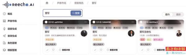 仍有三个名为“雷军”的克隆声音模型未下架