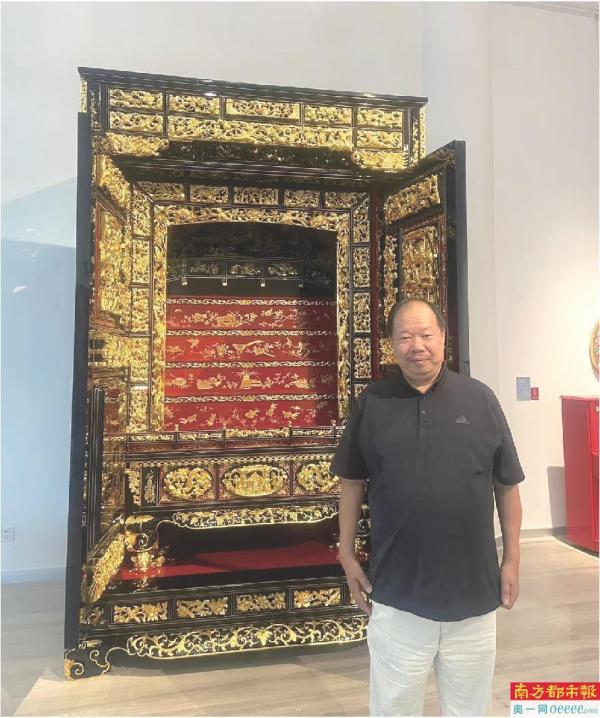 该作品由胡少平领衔创作,团队历时200天,采用明清以来流传于潮汕地区的潮式木龛制法,集合了小木作、大漆、木雕、金漆画四种非遗技艺。