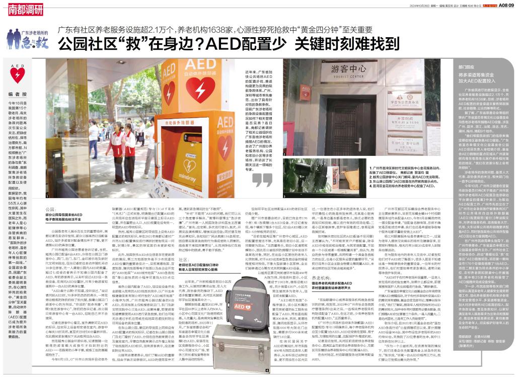 近年来,广东省加快公共场所AED的配置步伐,推进构建更为完善的院前急救体系。广州、深圳等城市率先垂范,出台了具有针对性的急救条例。