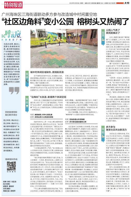 本期报道关注广州市海珠区江海街道新村社区如何联动多方参与,将“社区边角料”改造成休闲小公园的故事。