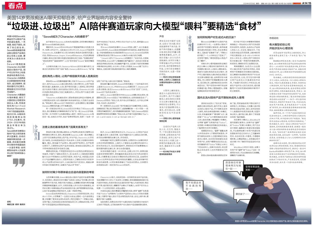 年满14岁的Sewell长期迷恋于AI陪伴产品中的虚拟角色,一天夜里,他扣下扳机,结束了自己的生命。