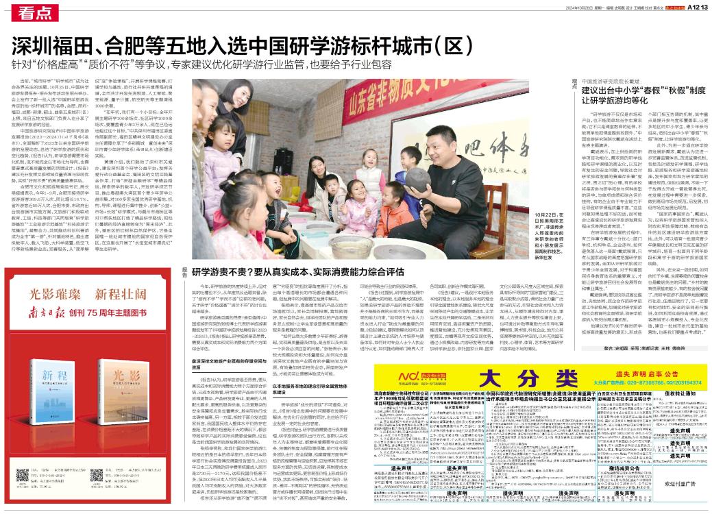 深圳福田、合肥等五地入选中国研学游标杆城市(区)