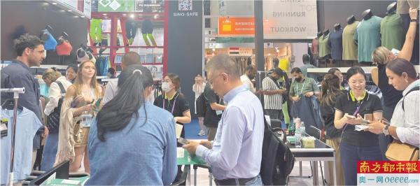 现场,俄罗斯采购商Aksana告诉南都湾财社记者,她常驻广州,这次为多个俄罗斯朋友现场寻货,她注意到该展位的牛仔背心“特别柔软”,“其实款式设计很常见,并没有特别之处,但关键它非常柔软,又使用生物降解的环保尼龙面料,契合环保的需求,所以我非常喜欢。”
