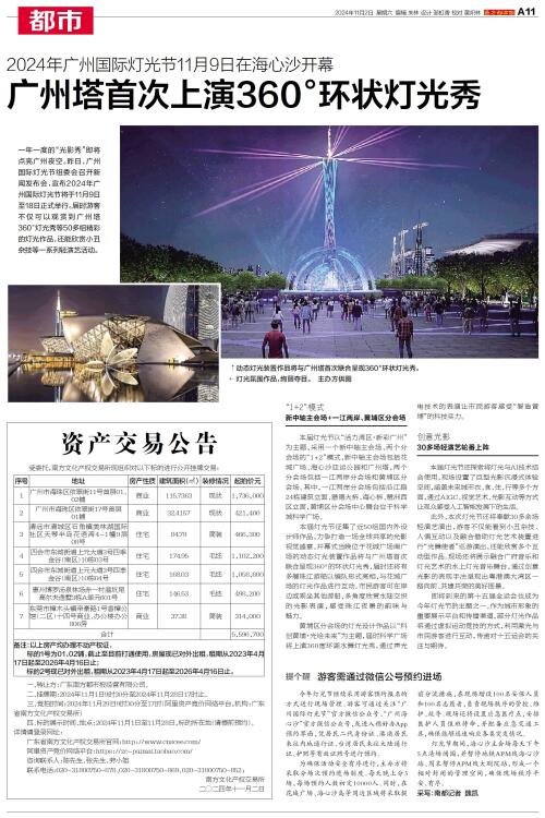 昨日,广州国际灯光节组委会召开新闻发布会,宣布2024年广州国际灯光节将于11月9日至18日正式举行。