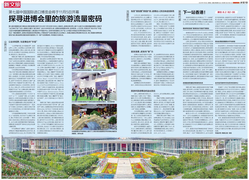 在近一周的展期内,进博会将是联结世界的舞台。尽管旅游产业相关展台所占比例较小,但通过精英业界的展示和交流,将汇聚国际视野的智慧和力量;解读进博会里的旅游流量密码,可一窥产业发展趋势,共享美好文旅生活。