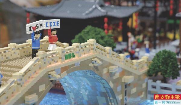 乐高集团在去年进博会上展示了上海乐高乐园度假区所在地枫泾镇的乐高模型。 新华社发
