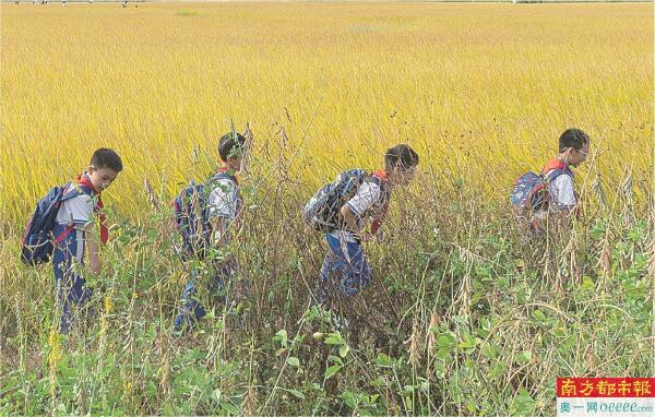 10月29日,金黄的稻田吸引百余名当地学生参观、学习水稻知识。