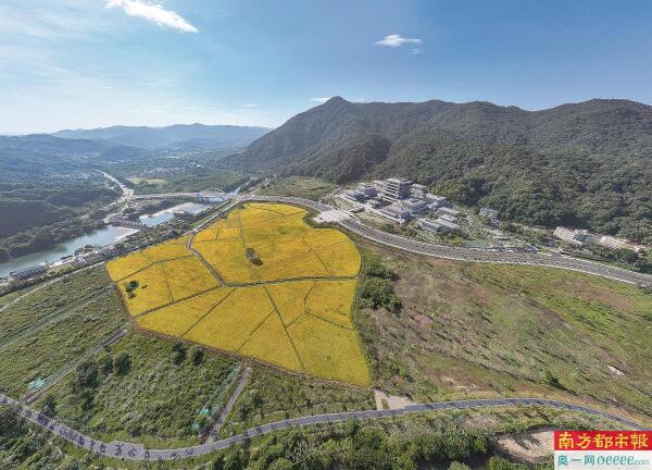 俯瞰金色稻田,就像一片秋日落叶“铺”在流溪河岸。