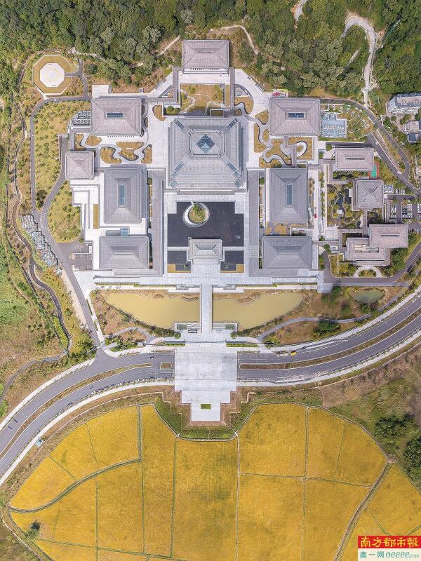 广州国家版本馆整体布局依山就势,层次递进。其背后是凤凰山,前面是流溪河。中国工程院院士何镜堂在设计广州国家版本馆之初就表示计划将门前的这块地设置为稻田,充分体现了人文、地域、自然与时代的融合统一,使得广州国家版本馆“既藏于名山,又立足于后代”。为打造版本馆前“稻花香里”农田亮丽风景,加强农田建后管护,从化区农业农村局委托专业化管理企业团队,开展日常巡查,聚焦农田基础设施和耕地地力水平提高,打造依山傍水,休闲的稻田生态景观。