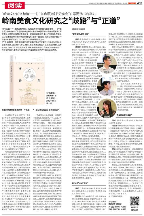 10月20日下午,由南方都市报、N视频主办的“岭南文化的多棱镜——《广东食语》新书分享会”在学而优书店举办。