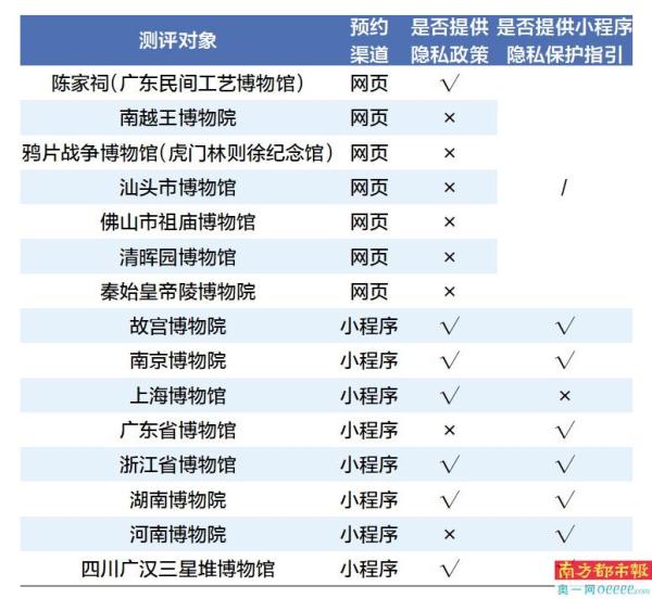 其中,以网页形式提供预约服务的7家博物馆中,南越王博物院、鸦片战争博物馆、佛山市祖庙博物馆、清晖园博物馆、汕头市博物馆,以及省外的秦始皇帝陵博物院,共6家未能提供隐私政策。唯一设有隐私政策阅读链接的陈家祠,内容全文也不到100字,仅表示个人信息的收集、使用和管理按照《广州市网络数据安全工作指引(试行)》办理,未直接明示个人信息的具体去向和处理方式。