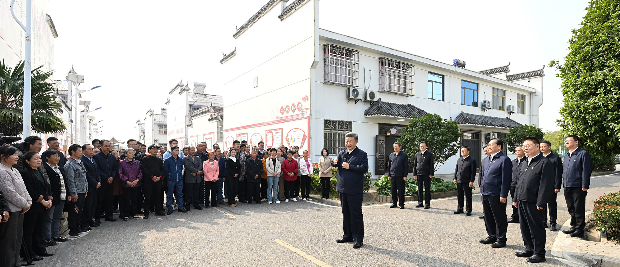 离开村子时,村民们热情欢送总书记。习近平对大家说,推进中国式现代化,必须加快推进乡村振兴,首先是要发展富民产业。希望乡亲们在党组织带领下,齐心协力、团结奋斗,用自己勤劳的双手,让特色产业更有效益,把村庄建设得更美,共同创造幸福美好的生活!