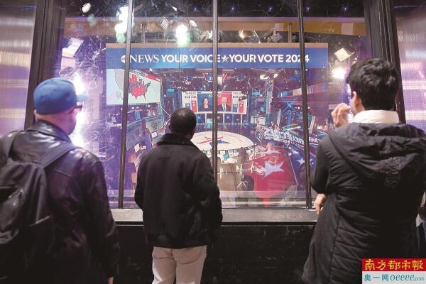 11月5日,人们在美国纽约时报广场观看实时出口民调。 新华社发