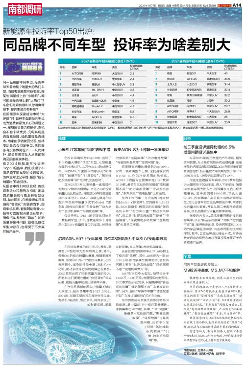 在新能源车买家成为市场“大多数”时,各种车型的投诉率也成为消费者最为关心的话题之一。车身质量是否有硬伤、车机会不会卡顿失灵、充电系统是否容易故障、续航里程是否缩水、商家的承诺能否兑现、价格变动是否会引发争议、售后服务有没有做到位?……凡此种种,都关系着买车人从售前到购买后的真实体验。