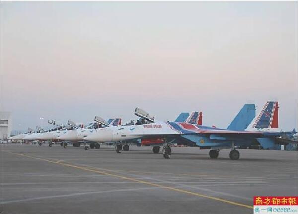 俄罗斯“勇士”飞行表演队的战斗机抵达。