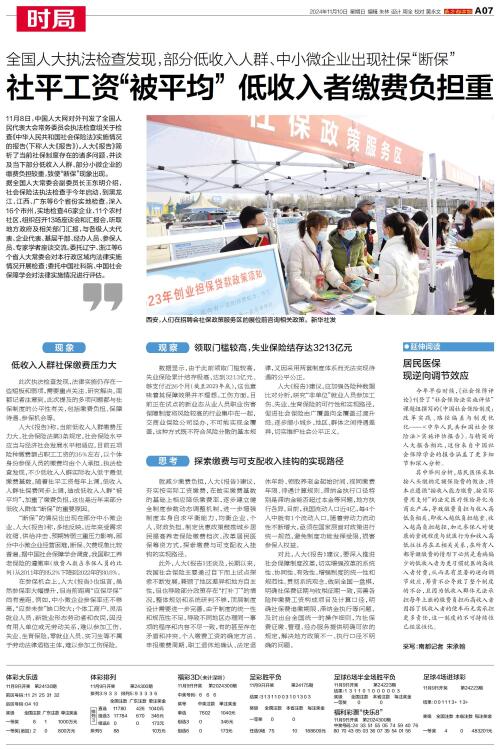 11月8日,中国人大网对外刊发了全国人民代表大会常务委员会执法检查组关于检查《中华人民共和国社会保险法》实施情况的报告。