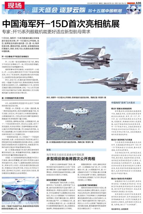11月9日,海军歼-15系列舰载机编队在珠海进行适应性训练,歼-15D首次公开亮相。